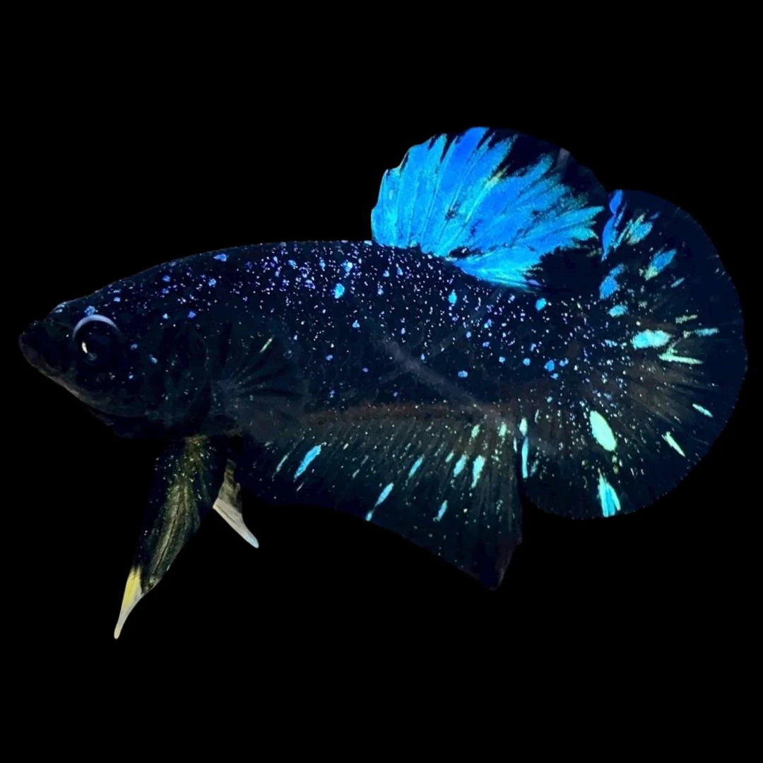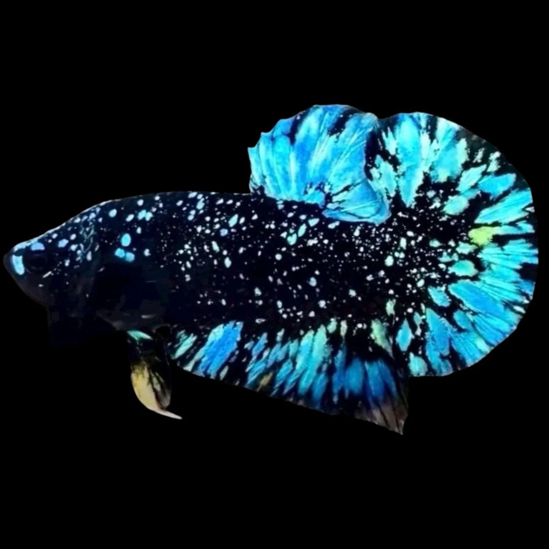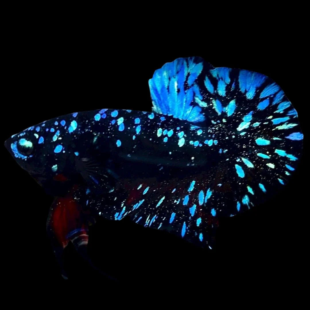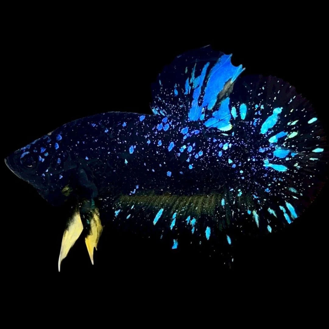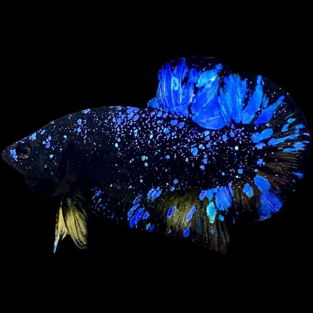 The Avatar Betta, also known as the Black Star Betta, is a unique breed that originates from the Galaxy Betta group. It is known for its black body adorned with exquisite blue pearl spots, giving it a celestial appearance.