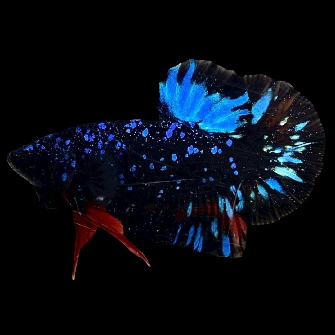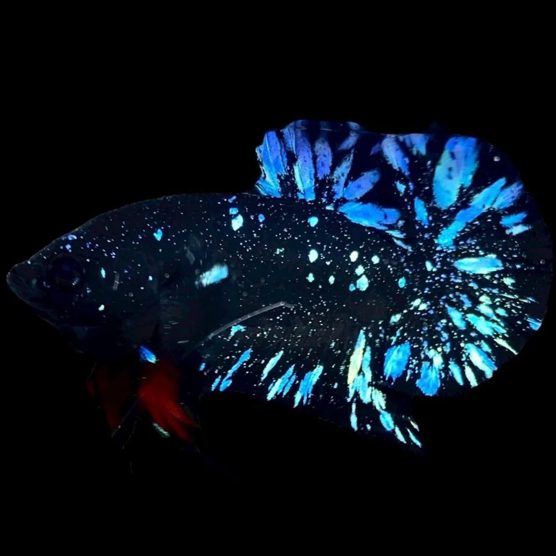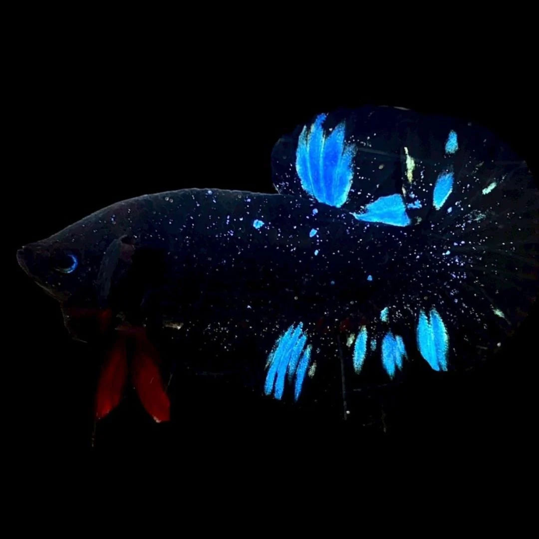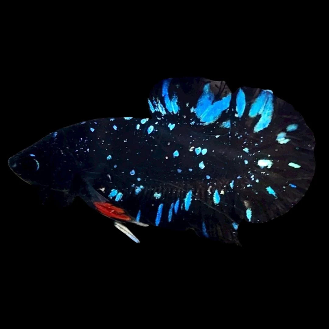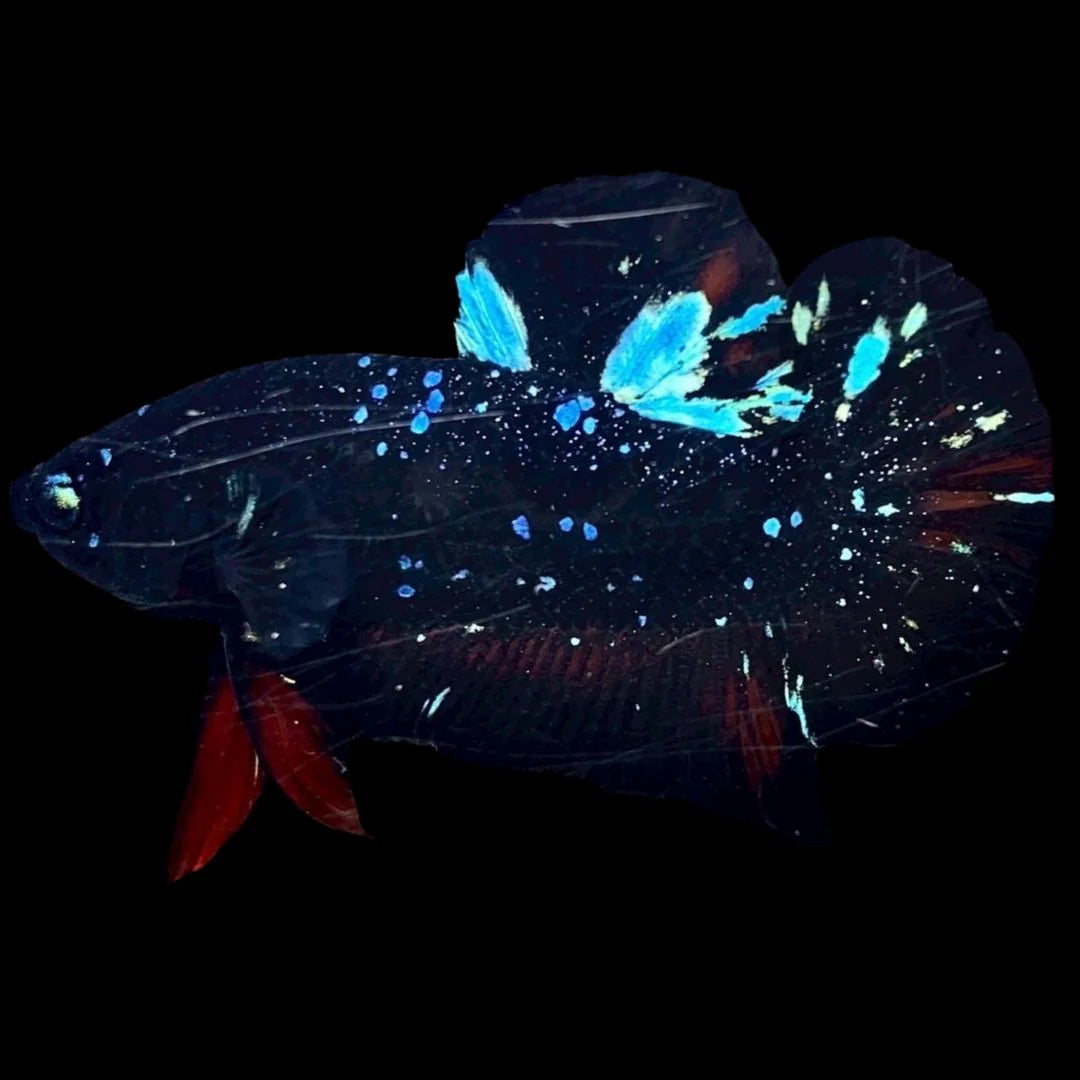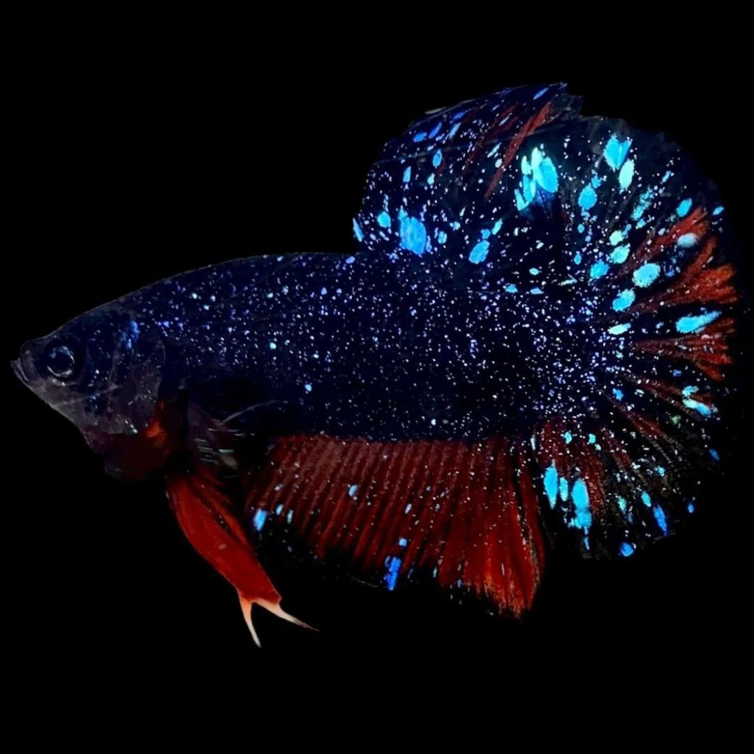 The Avatar Betta, also known as the Black Star Betta, is a unique breed that originates from the Galaxy Betta group. It is known for its black body adorned with exquisite blue pearl spots, giving it a celestial appearance.