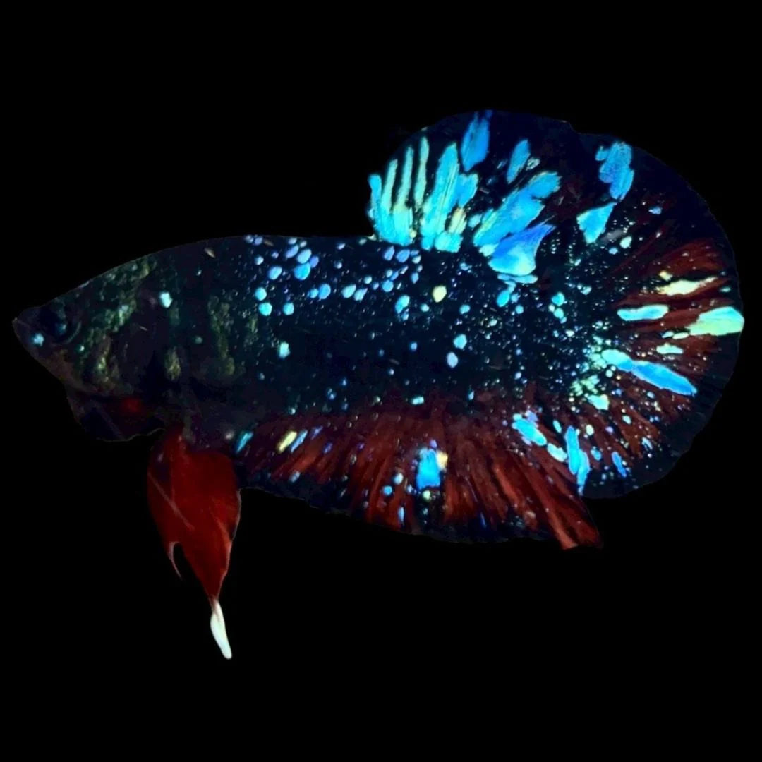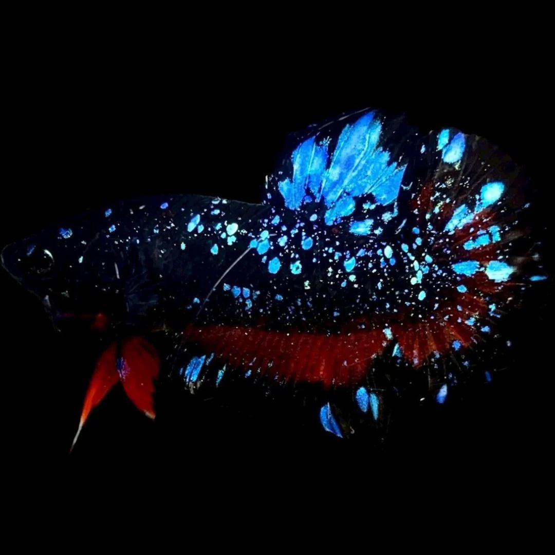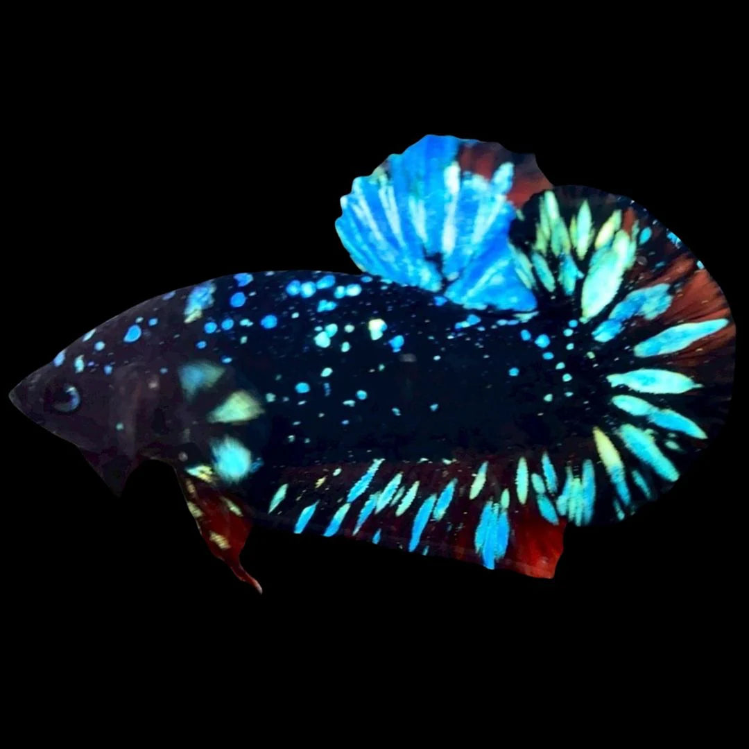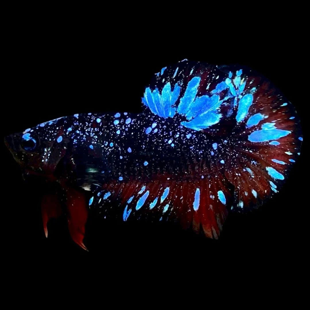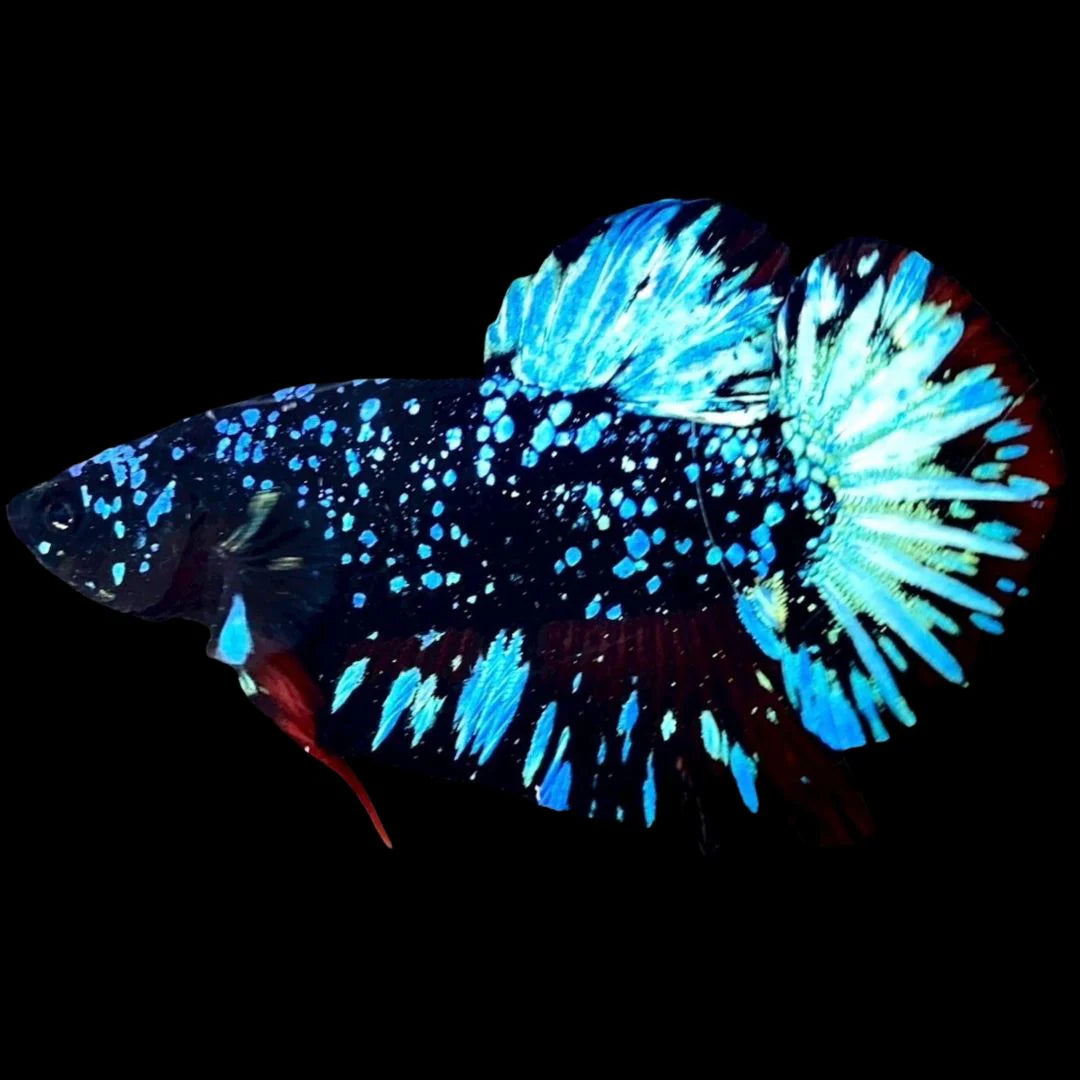 The Avatar Betta, also known as the Black Star Betta, is a unique breed that originates from the Galaxy Betta group. It is known for its black body adorned with exquisite blue pearl spots, giving it a celestial appearance.