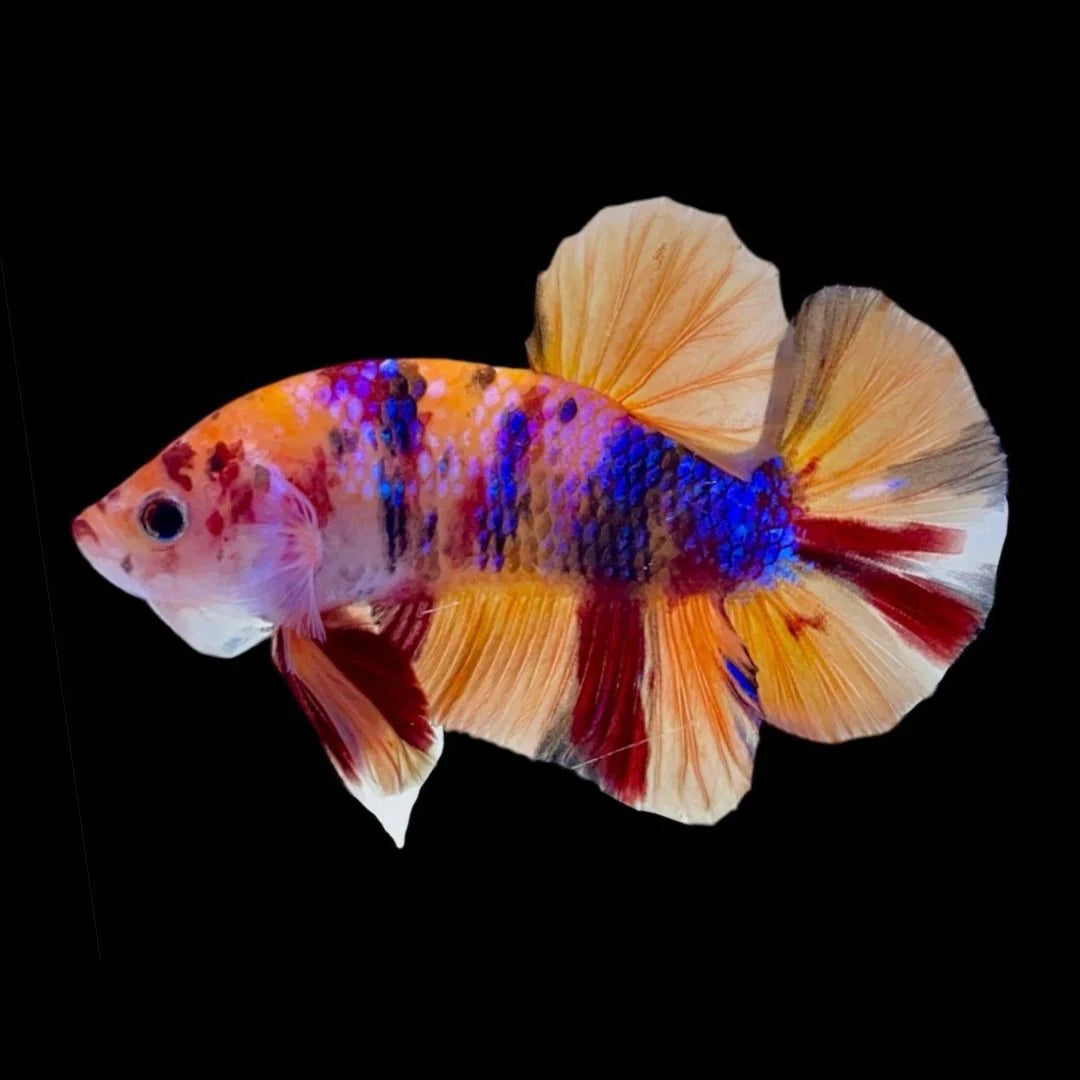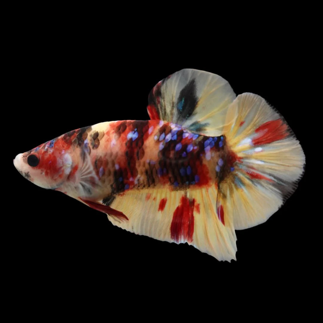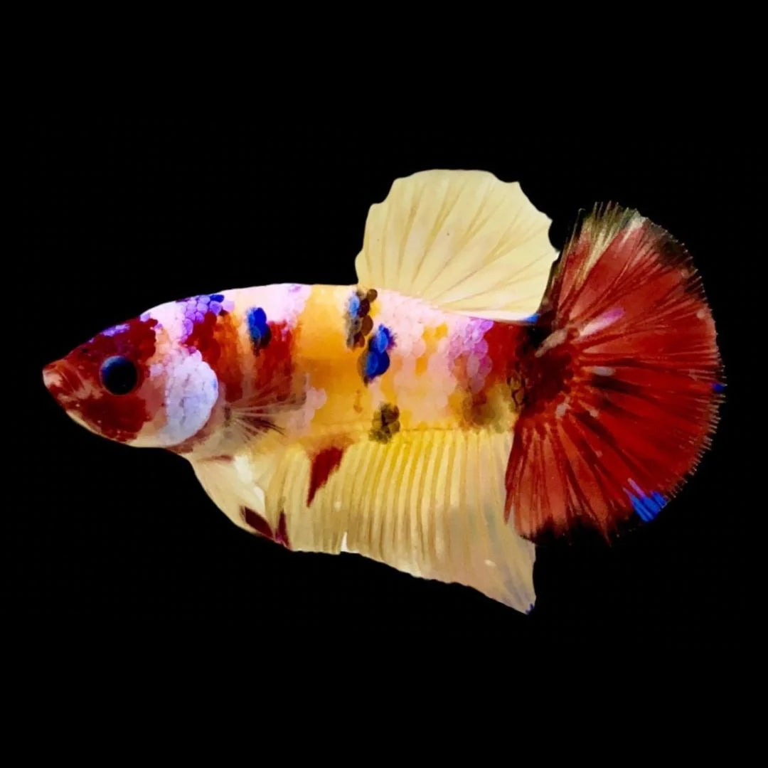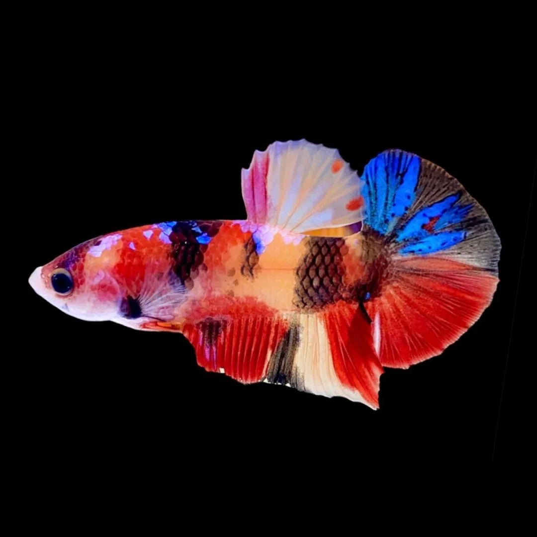 - Fancy Plakat Betta: Fancy Plakat Bettas are characterized by their vibrant and diverse color patterns. They can exhibit a combination of multiple colors like red, blue, green, and yellow, often in a marbled or patchy arrangement, making each fish uniquely beautiful.