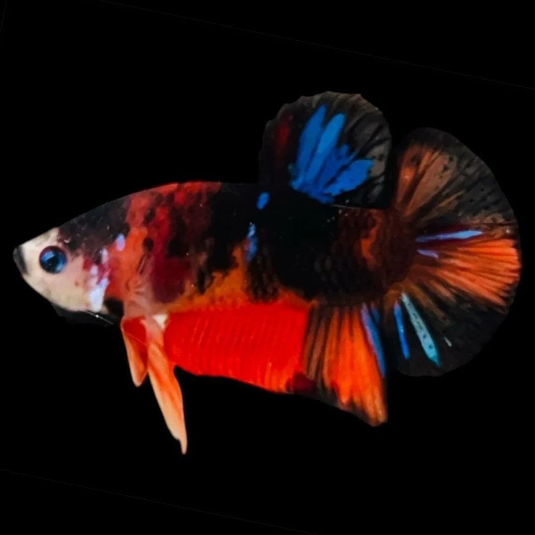 - Hellboy Plakat Betta: Named for its vivid red and dark coloration resembling the comic character Hellboy, the Hellboy Plakat Betta features a striking combination of deep reds and blacks, often with a marbled or blotched pattern, giving it a dramatic appearance.
