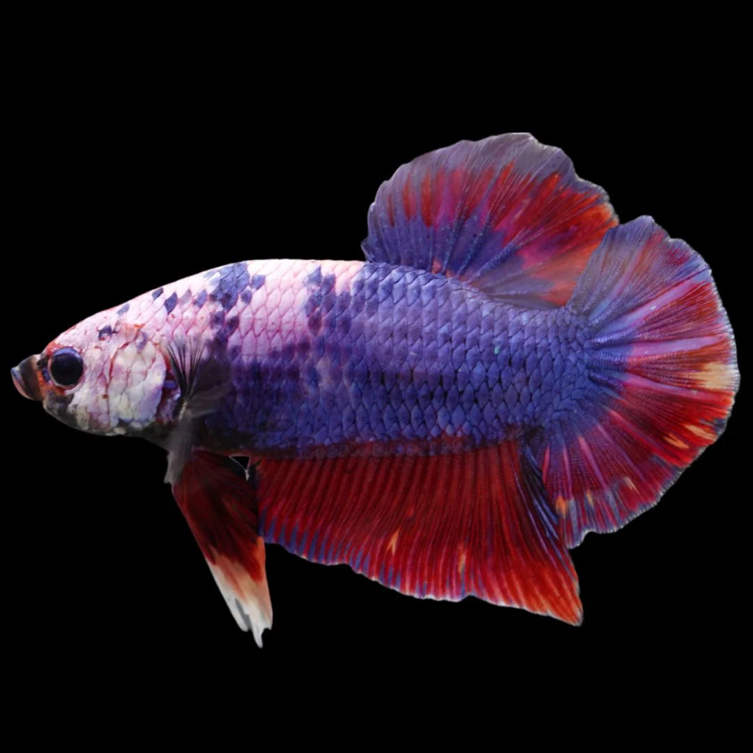 The Halfmoon Purple Betta Fish is a stunning exotic species originating from Thailand, selectively bred...