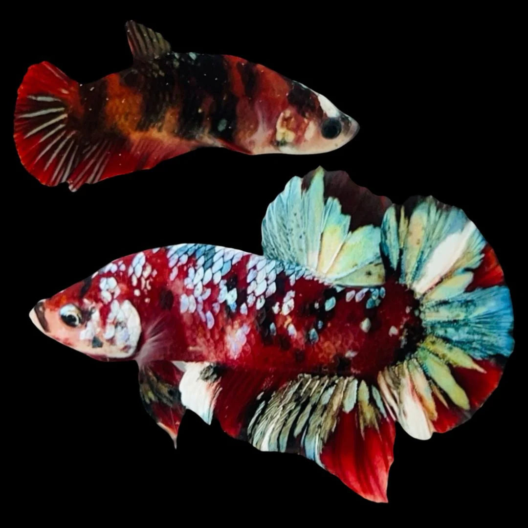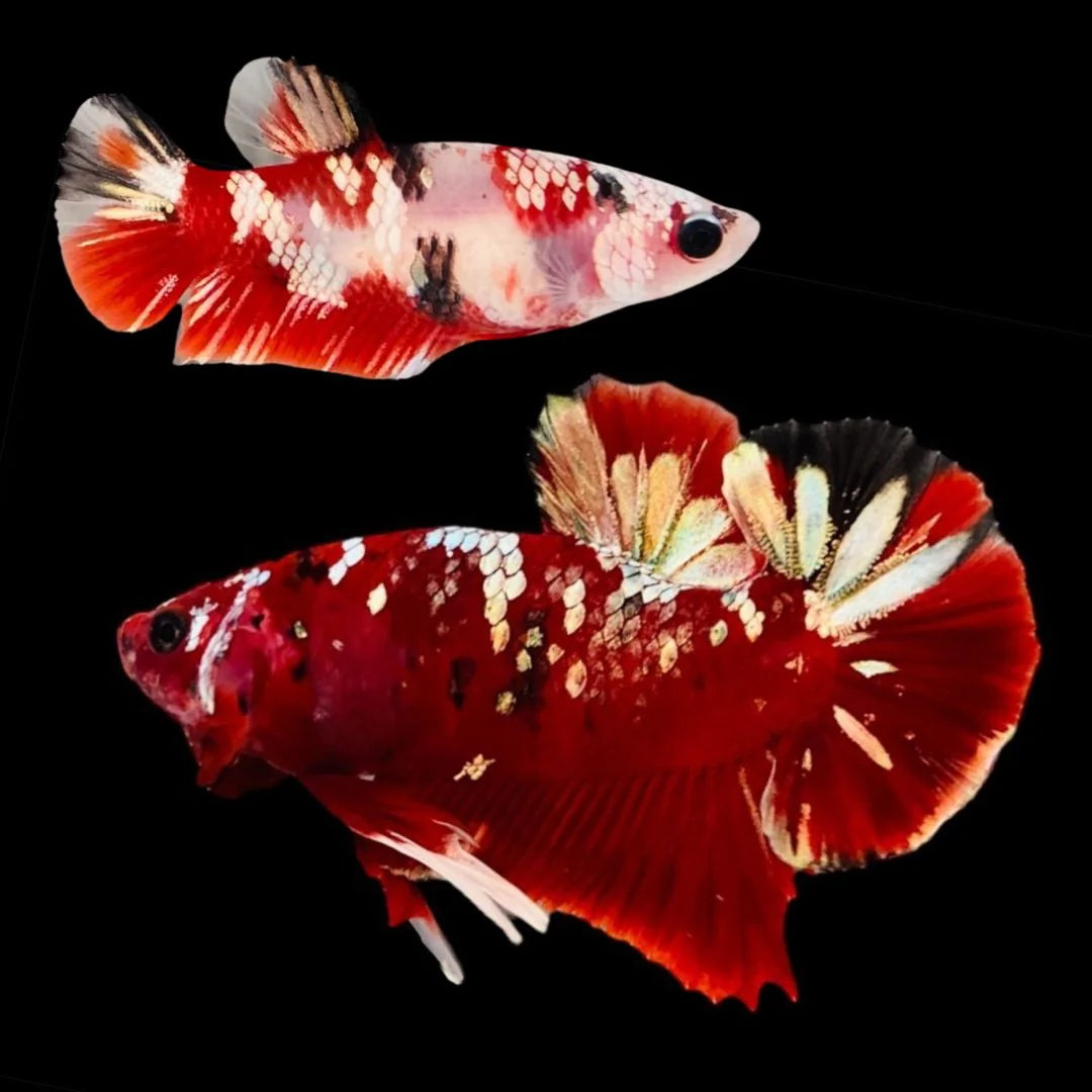 Explore our unique variety of Betta fish with two beautiful specimens, a male and female....