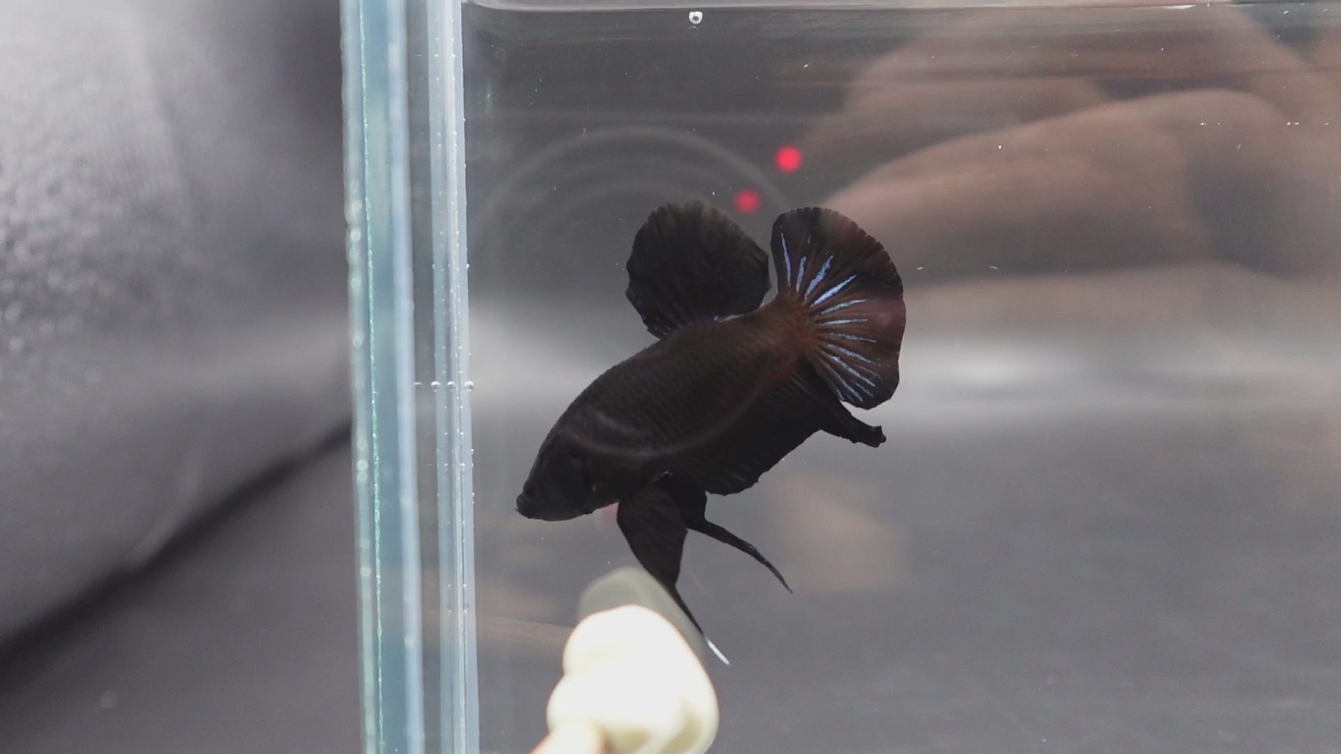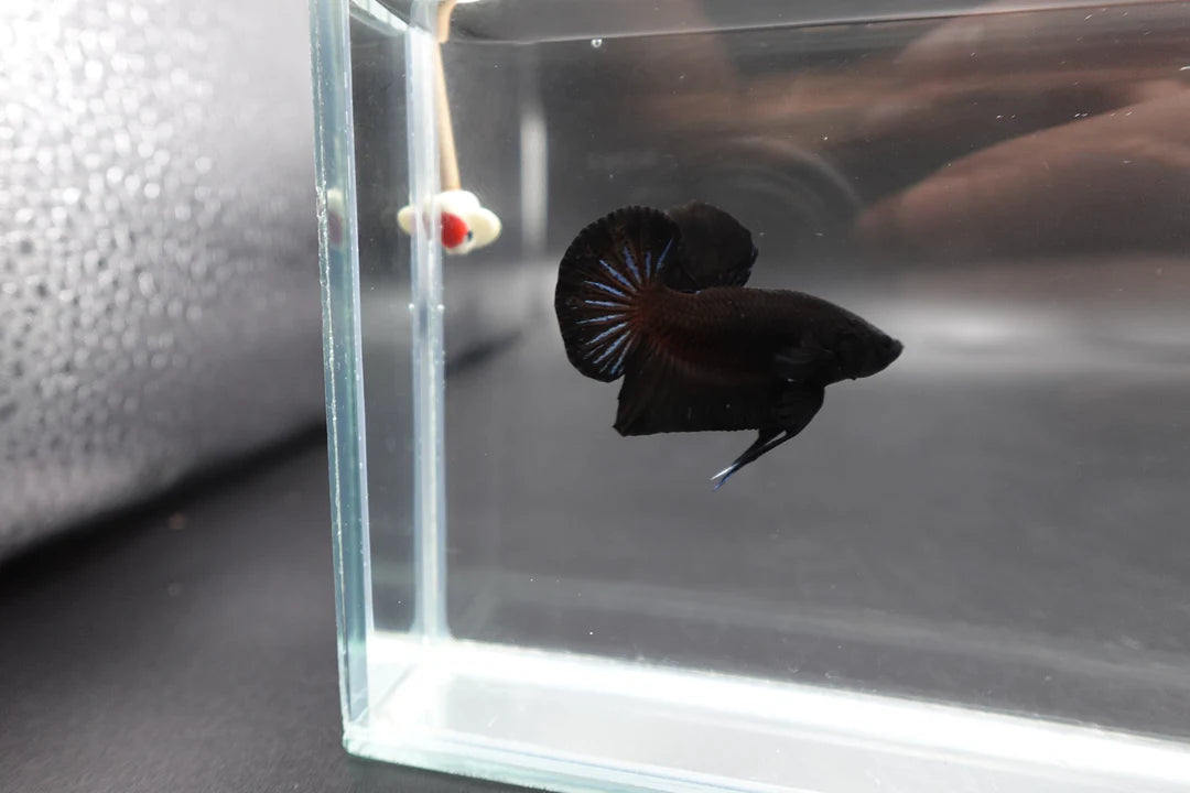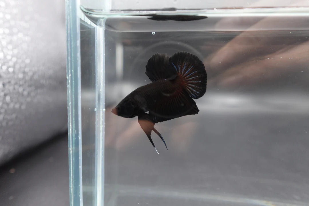 The Black Betta Fish is a stunning exotic species originating from Thailand, selectively bred by our breeders to have a perfect sparkling black color on its body. Its striking tail and vibrant colors make it a captivating addition to any aquarium. Bring home The Black Betta Fish today and experience the beauty of this magnificent creature.