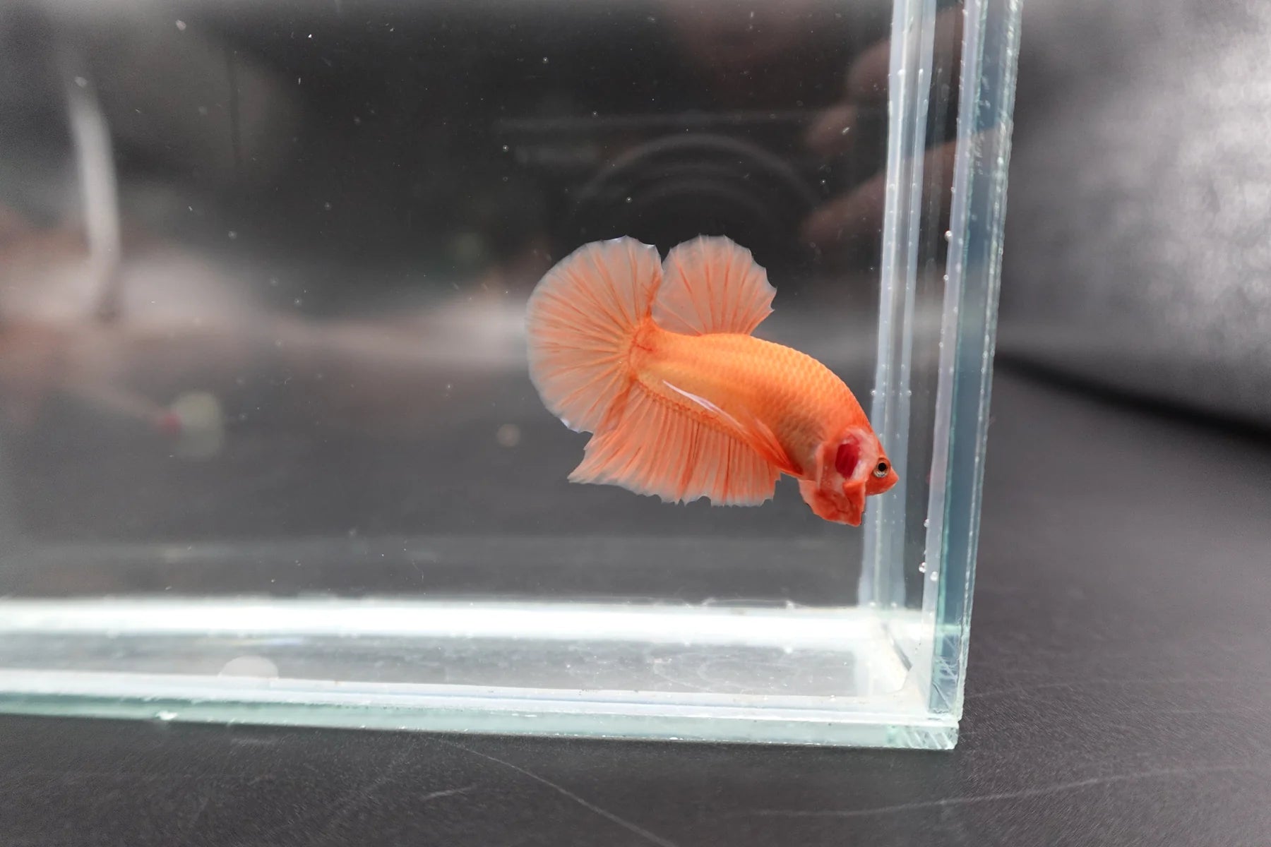 The Marmalade Orange Betta Fish is a stunning exotic species originating from Thailand, selectively bred by our breeders to have a perfect sparkling marmalade orange color on its body. Its striking tail and vibrant colors make it a captivating addition to any aquarium. Bring home The Marmalade Orange Betta Fish today and experience the beauty of this magnificent creature.