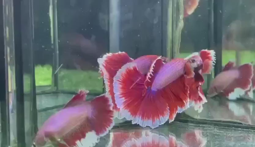 Pair Halfmoon Ruby Red Butterfly Betta Fish (Male & Female)