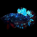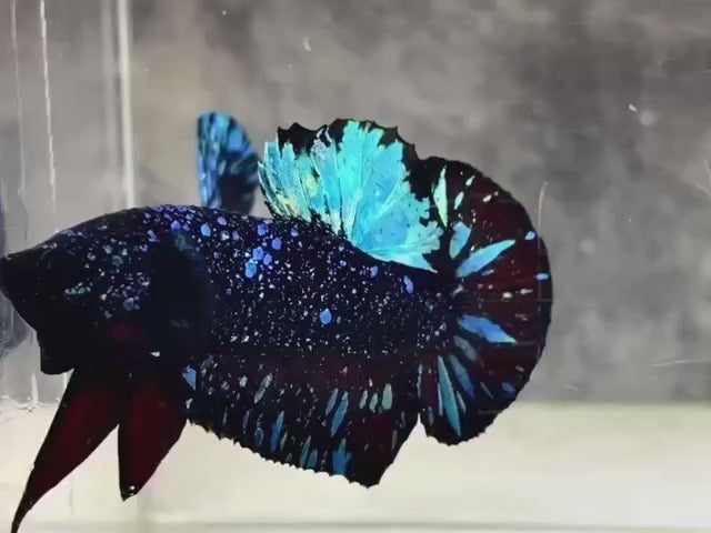 A beautiful and unique variety of the betta fish species. It has a striking black coloration that is accented by iridescent blue spots on its fins and body. Our breeders have selectively bred this fish to have a perfect color on its body. Buy live rare and premium betta fish from Thailand and experience the beauty of this magnificent creature.