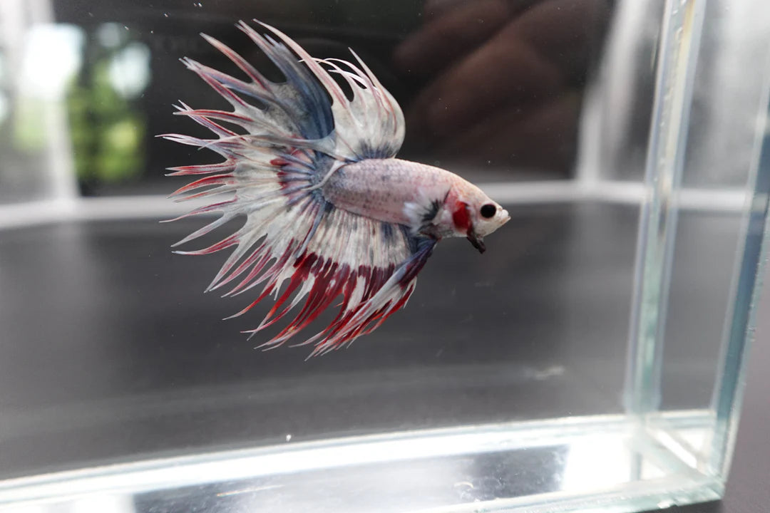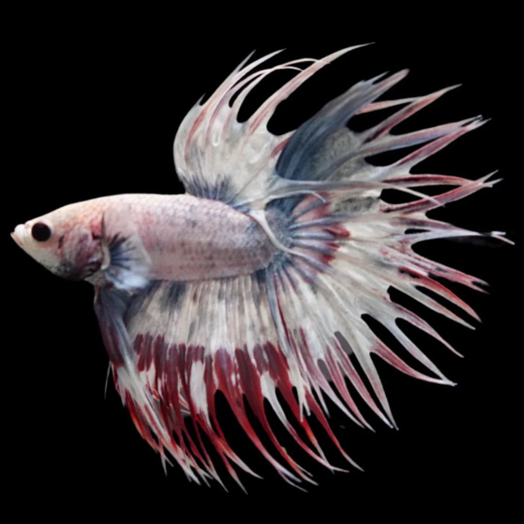 Rare Candy Crowntail Betta Fish have a similar body shape to typical Betta fish, with a slender and long body tapering down to a point at the mouth. However, their unique feature is the lack of webbing between the rays on their fins, with the webbing stopping well short of the peaks, resulting in a spiky appearance. Our breeder has specially bred this fish with unique color genes that give it sparkly multicolors on its body. Add the stunning Rare Candy Crowntail Betta Fish to your aquarium today and experience the beauty of this magnificent creature.