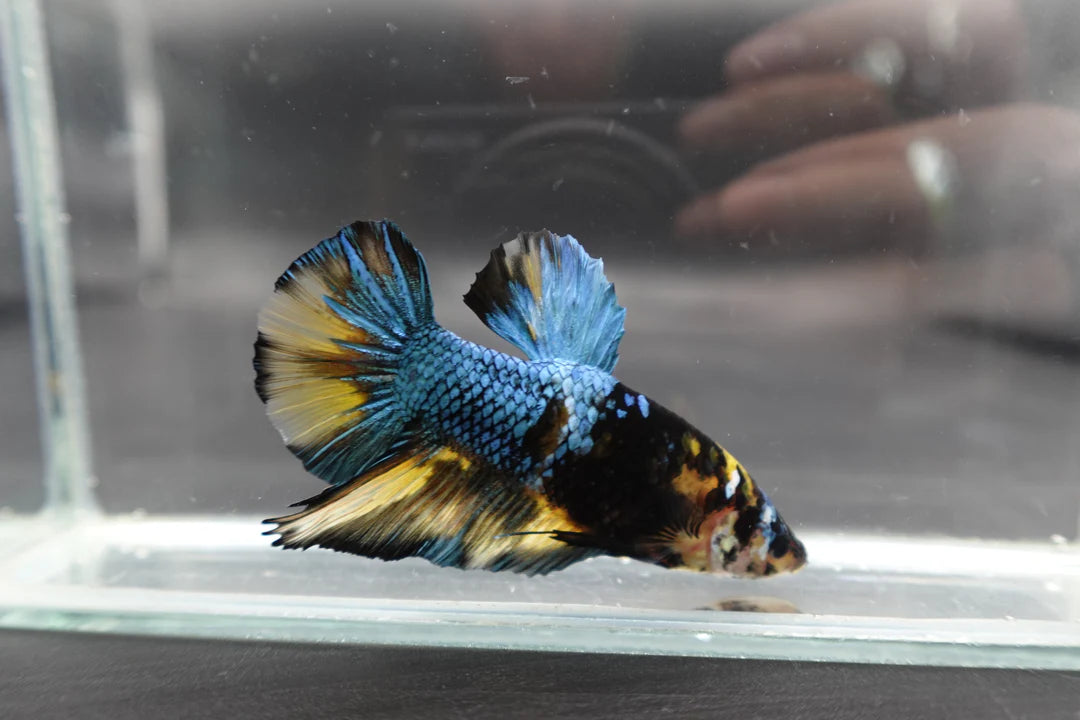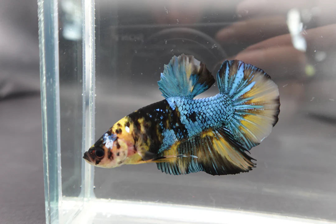 Discover our unique selection of betta fish that are larger than the standard variety. These fish are believed to have originated in Thailand, where many of the most successful and well-known giant betta breeders are located. The majority of giant betta fish sold internationally also come from Thailand. Our betta fish have striking coloration and are adorned with iridescent yellow , blue and black on their fins and bodies. Our breeders have selectively crafted a perfect color on their bodies. Buy a rare and premium pair of betta fish from Thailand and marvel at the beauty of these magnificent creatures.