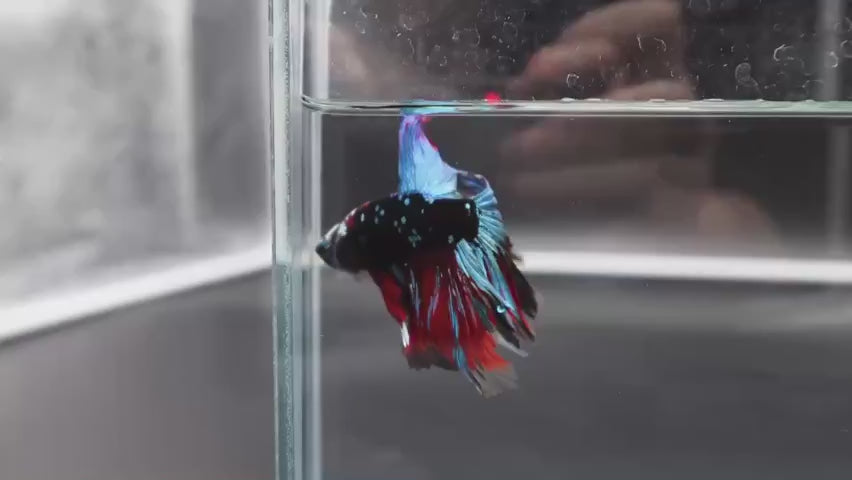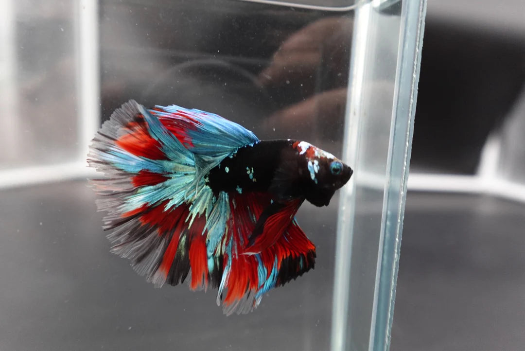 The Rare Halfmoon Black Star Betta Fish is a stunning exotic species originating from Thailand, selectively bred by our breeders to have a perfect colors on its body. Its striking half-moon shaped tail and vibrant colors make it a captivating addition to any aquarium. Buy Rare and Premium Rare Halfmoon Black Star Betta Fish today and experience the beauty of this magnificent creature