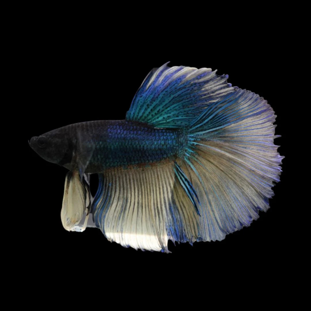 Discover our unique selection of betta fish that are larger than the standard variety. These fish are believed to have originated in Thailand, where many of the most successful and well-known giant betta breeders are located. The majority of giant betta fish sold internationally also come from Thailand. Our betta fish have striking white coloration and are adorned with iridescent blue and yellow on their fins and bodies. Our breeders have selectively crafted a perfect color on their bodies. Buy a rare and premium betta fish from Thailand and marvel at the beauty of these magnificent creatures.