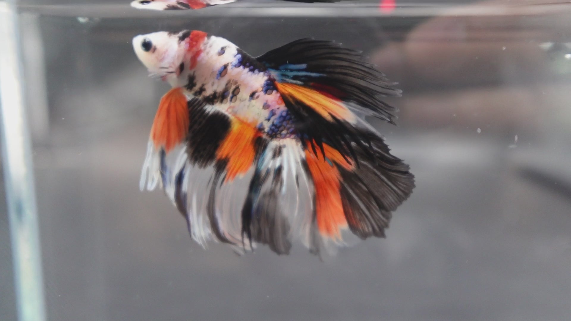 The Rare Halfmoon Koi Multicolors Betta Fish is a stunning exotic species originating from Thailand, selectively bred by our breeders to have a perfect multicolors on its body. Its striking half-moon shaped tail and vibrant colors make it a captivating addition to any aquarium. Buy Rare and Premium Rare Halfmoon Koi Multicolors Betta Fish today and experience the beauty of this magnificent creature.