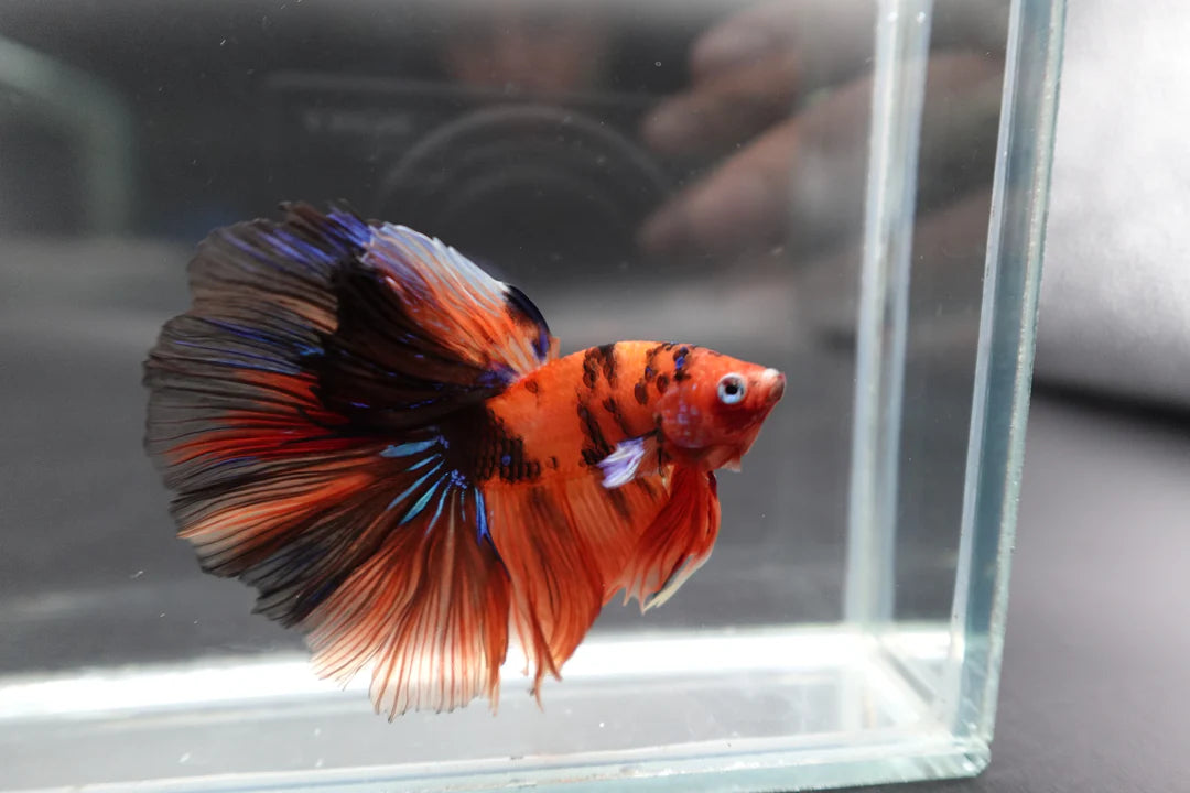 The Rare Halfmoon Multicolors Betta Fish is a stunning exotic species originating from Thailand, selectively bred by our breeders to have a perfect multicolors on its body. Its striking half-moon shaped tail and vibrant colors make it a captivating addition to any aquarium. Buy Rare and Premium Rare Halfmoon Multicolors Betta Fish today and experience the beauty of this magnificent creature