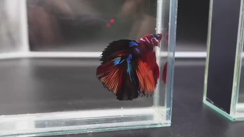 The Rare Halfmoon Multicolors Betta Fish is a stunning exotic species originating from Thailand, selectively bred by our breeders to have a perfect multicolors on its body. Its striking half-moon shaped tail and vibrant colors make it a captivating addition to any aquarium. Buy Rare and Premium Rare Halfmoon Multicolors Betta Fish today and experience the beauty of this magnificent creature