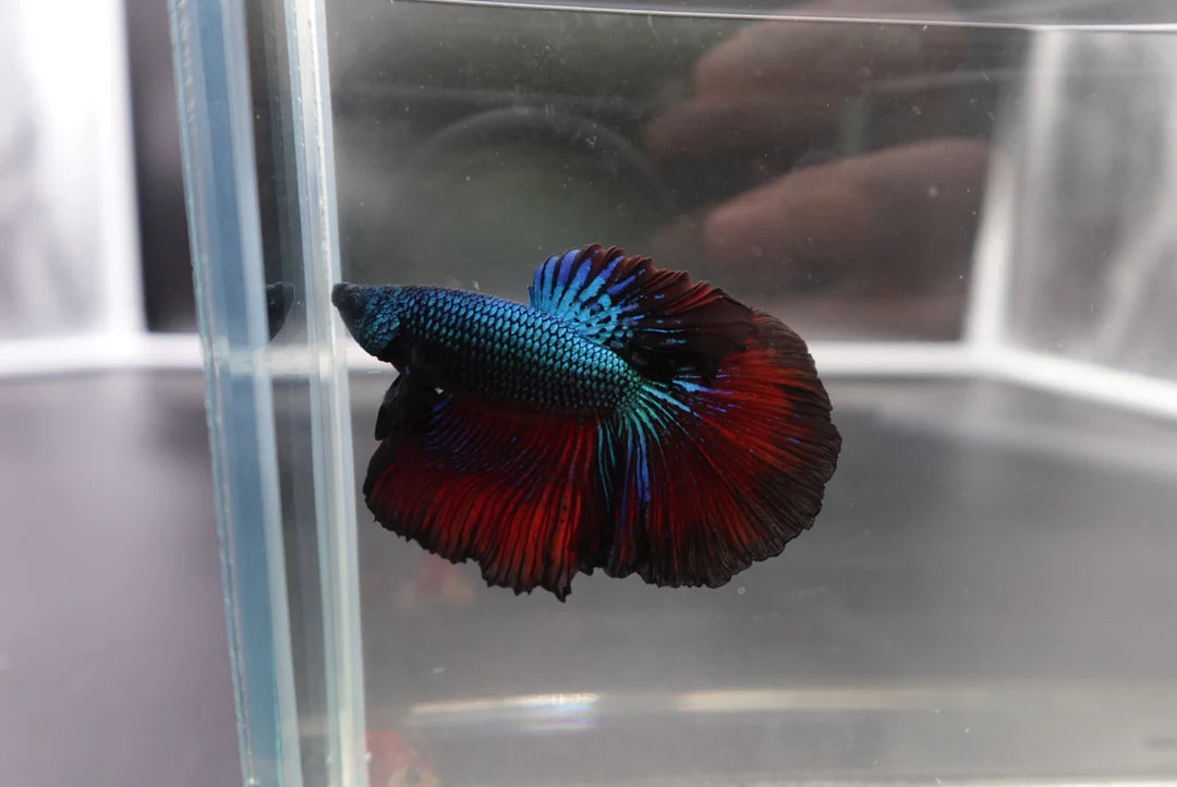 The Rare Halfmoon Red Copper Betta Fish is a stunning exotic species originating from Thailand, selectively bred by our breeders to have a perfect red and copper on its body. Its striking half-moon shaped tail and vibrant colors make it a captivating addition to any aquarium. Buy Rare and Premium Rare Halfmoon Red Copper Betta Fish today and experience the beauty of this magnificent creature