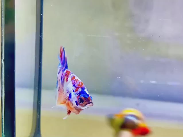 A stunning exotic species originating from Thailand. Our breeder has specially bred this fish with unique color genes that lend it striking multicolors on its body, reminiscent of a delightful koi treat. This fascinating fish derives its name from its resemblance to a confectionery delight. Buy live rare and premium betta fish for sale to your aquarium today and experience the beauty of this magnificent creature.
